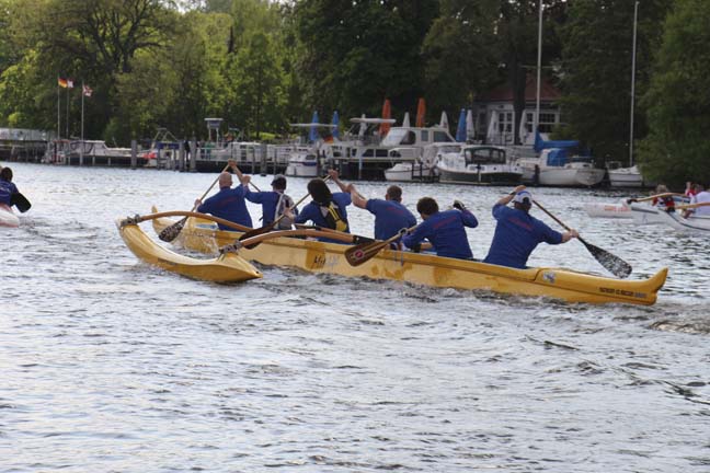 Dort als Sport so üblich wie bei uns Fußball, halten die Outrigger in Europa gerade erst Einzug. Wir haben in unserem Club Einer, Zweier und Sechser,